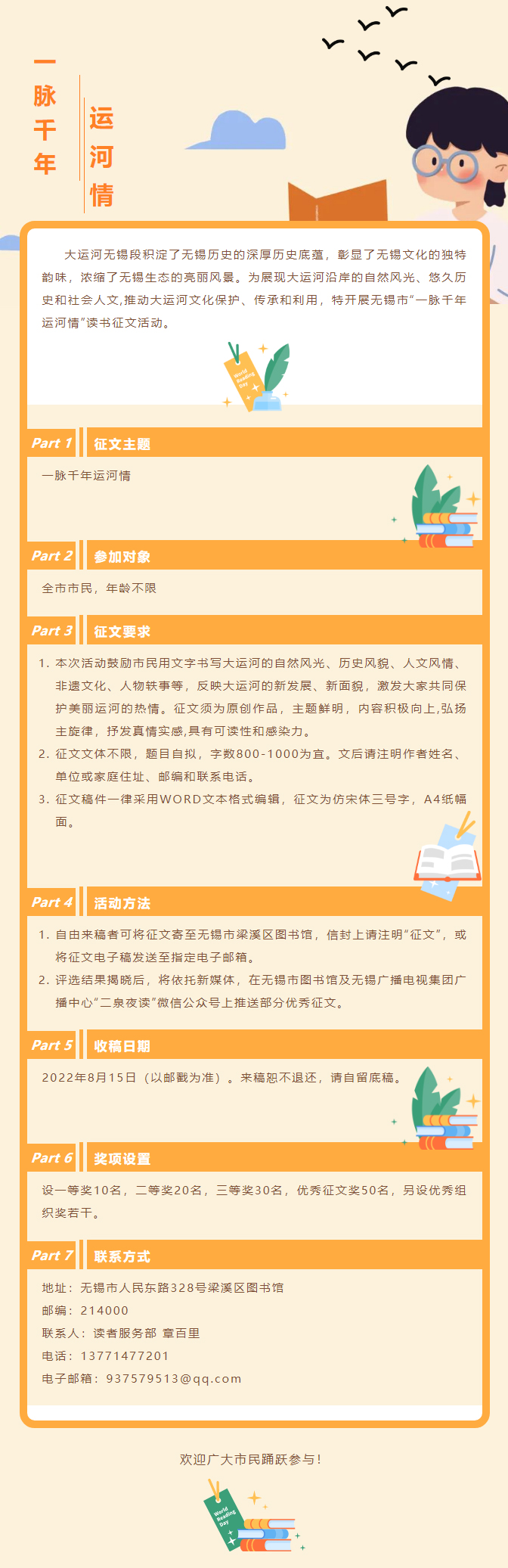 无锡市“一脉千年运河情”读书征文活动开始啦