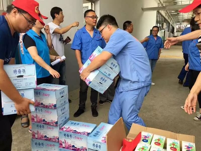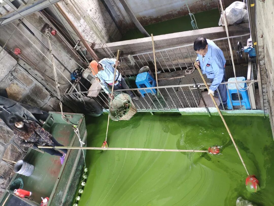 在参观藻水分离流程工艺中,一行人亲切的与刚结束打捞的工作人员交谈,了解打捞工作量,并叮嘱他们要注意安全,做好接下来的防暑降温工作,并为他们送去矿泉水等用品表示慰问。