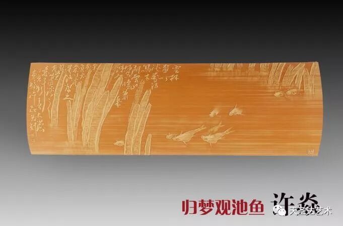 留青竹刻又称平雕,皮雕等,竹刻之一种。留青,是留用竹子表面的一层青筠,作为雕刻图纹;然后铲去图纹以外的竹青,露出下面的竹肌作地。竹筠色浅,年久呈微黄;竹肌年愈久,色愈深,色如琥珀。留青竹刻,宜充分利用这种质地和色泽变化差异,采取青筠全留、多留、少留或不留,分出层次,形成色彩从深到浅,自然退晕效果。