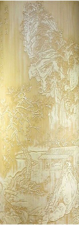 明代张希黄留青浅刻山水笔筒,是迄今传世最早的无锡名家竹刻。1914年,无锡竹刻在巴拿马万国博览会获二等奖、带板竹刻获三等奖。