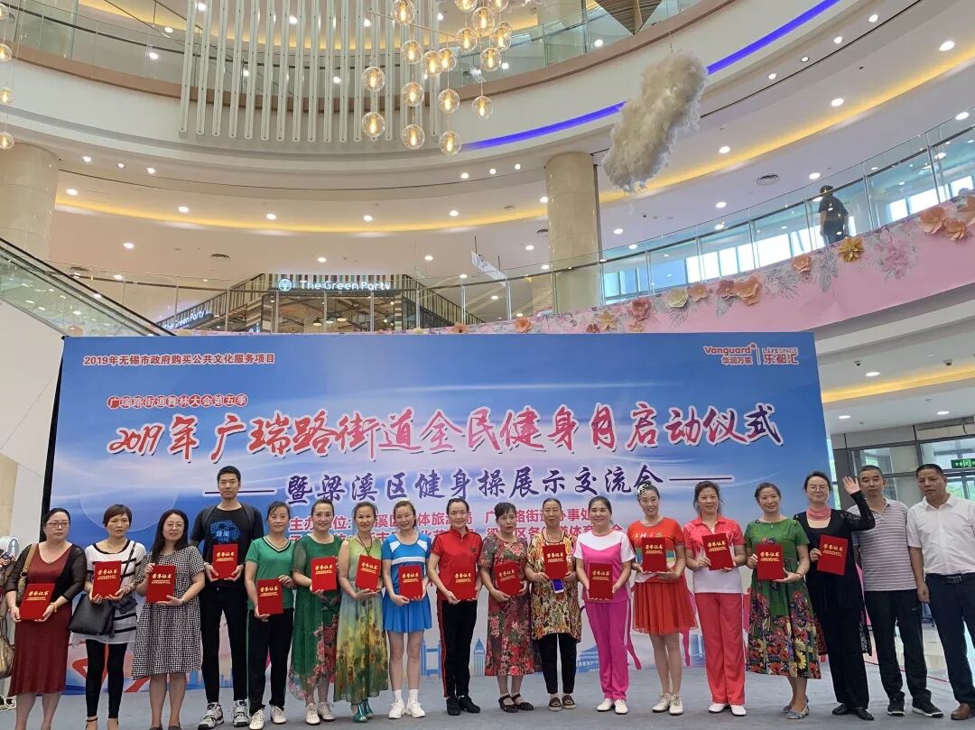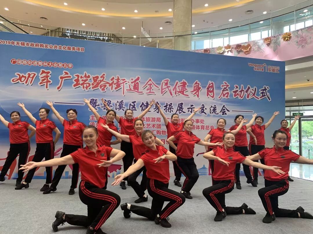 8月9日下午,由区文体旅游局和广瑞路街道办事处主办的2019年广瑞路街道全民健身月启动仪式暨梁溪区健身操交流展示会在乐都汇商业广场顺利举行。