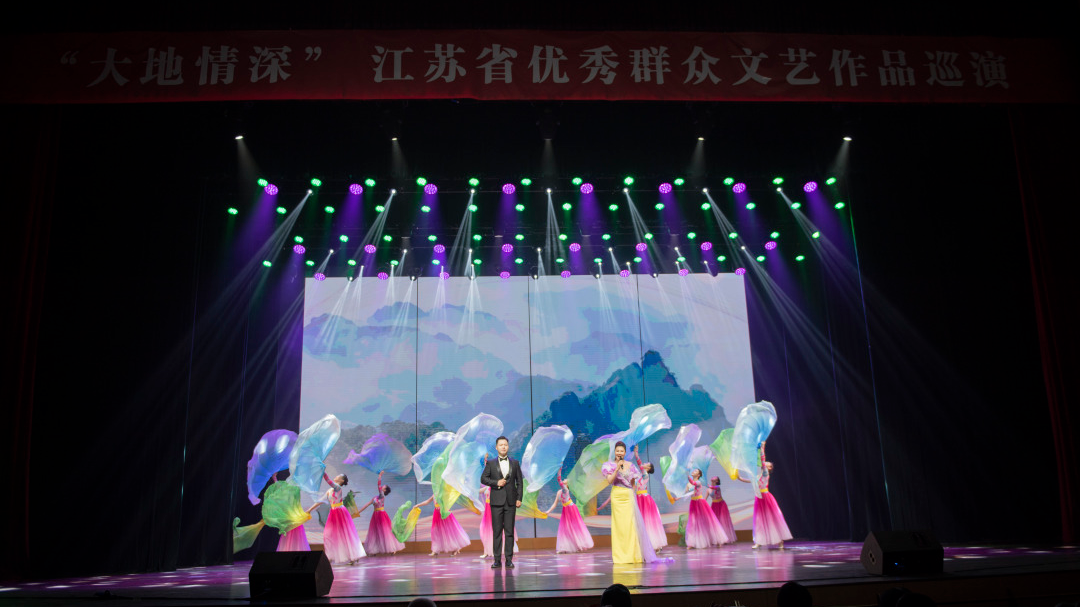 “大地情深”江苏省优秀群众文艺作品巡演于4月16日从南京启程,充分利用传统节日和法定假日,至6月底在全省13个设区市巡演13场。参加巡演的节目均是近年来荣获国家“群星奖”、省“五星工程奖”的优秀作品,它们源于基层沃土,讲述江苏故事,弘扬中国精神,抒发人民情怀,是新时代江苏群众文艺创作的最新成果。