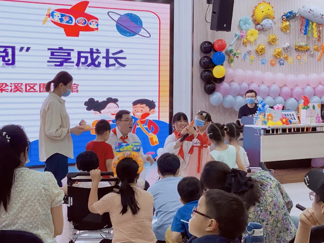 2023年5月30日,六一儿童节到来之际,梁溪区图书馆二楼多功能厅热闹非凡,彩色气球、蛋糕糖果、礼物玩具把大厅装扮的喜气洋洋。梁溪区图书馆携手无锡市康复医院开展的“欢庆六一