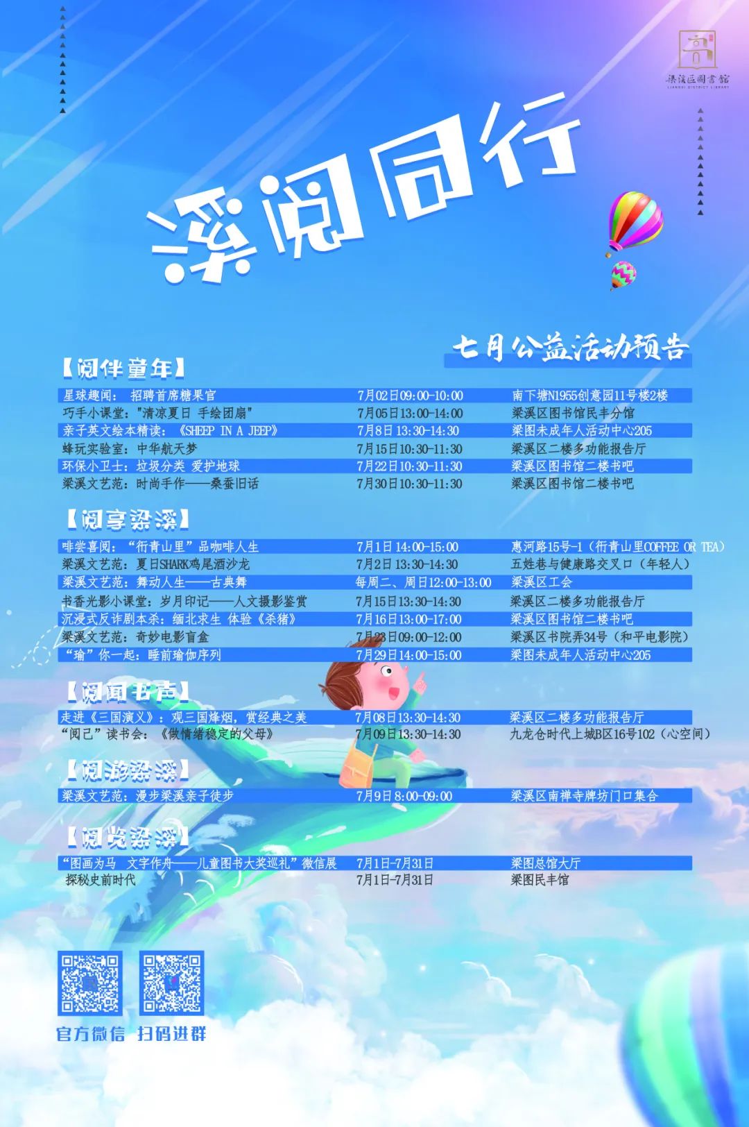 暑期已至,夏日炎炎。为满足读者暑期阅读需求,梁图暑期焕新升级,通过延长开馆时间、增设阅览座椅、设置等候休闲区等惠民利民举措,给读者带来更好的到馆体验。另有丰富多彩的公益阅读推广活动,溪阅积分换文创好礼活动等您参加!一起来了解下吧!