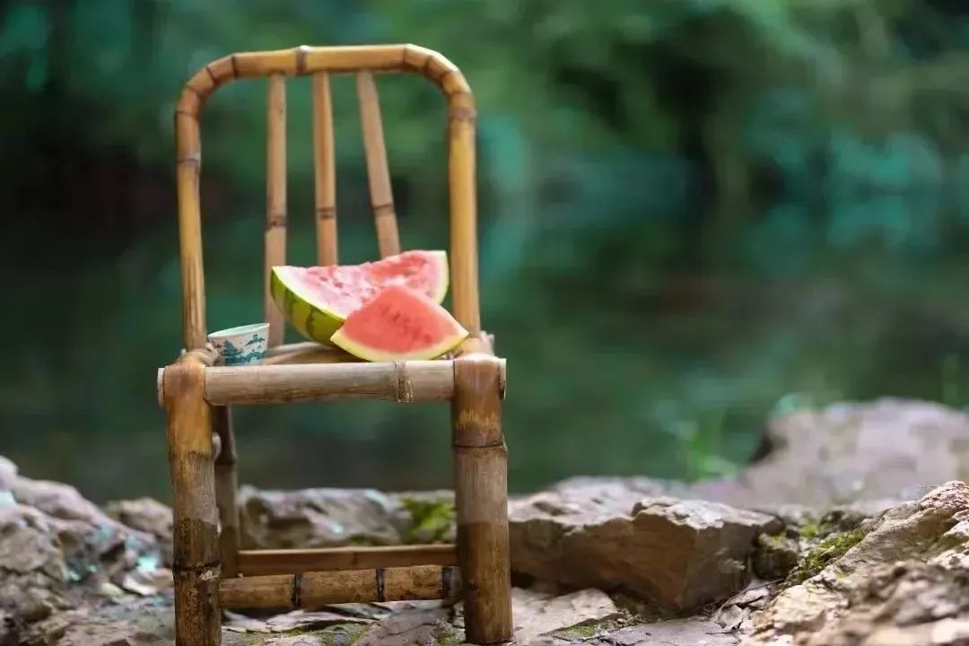 凉席竹椅蒲扇、鲜藕西瓜绿豆
