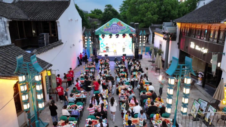 惠山古镇国潮啤酒龙虾节持续至7月底,每到夜幕降临,小龙虾、帝王蟹、烤串等各种接地气美食的香气飘满尊贤街。景区还推出“国潮”古装巡游、“电音”复古热曲等音乐节专场主题系列活动,每晚演艺持续6小时。