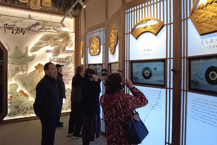 重新回归的阿炳故居,外墙一新,并增加了一个入口。走进院内,雷尊殿已变身阿炳生平厅,新媒体和银丝古建共同构成的展示空间,光影交错,江南风情尽现,让人耳目一新。
