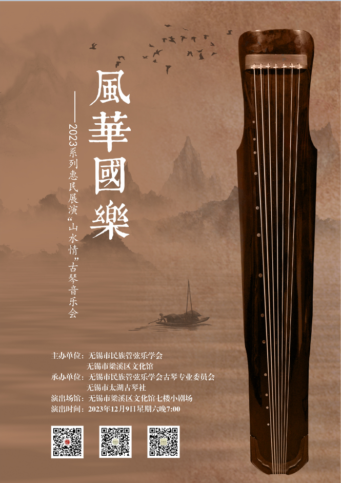 12月9日晚,无锡市梁溪区文化馆、无锡市民族管弦乐学会主办的风华国乐——2023系列惠民展演的最后一场,“山水情”古琴音乐会即将在梁溪区文化馆七楼小剧场倾情上演。