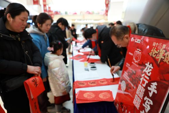 春临大地百花艳,节到人间万象新。1月27日,梁溪区文化馆龙行龘龘 手写春晖“送万福 进万家”春联书赠活动走进无锡八佰伴,为无锡市民书联送“福”,将“文化年货”与新春祝福送到群众手中。