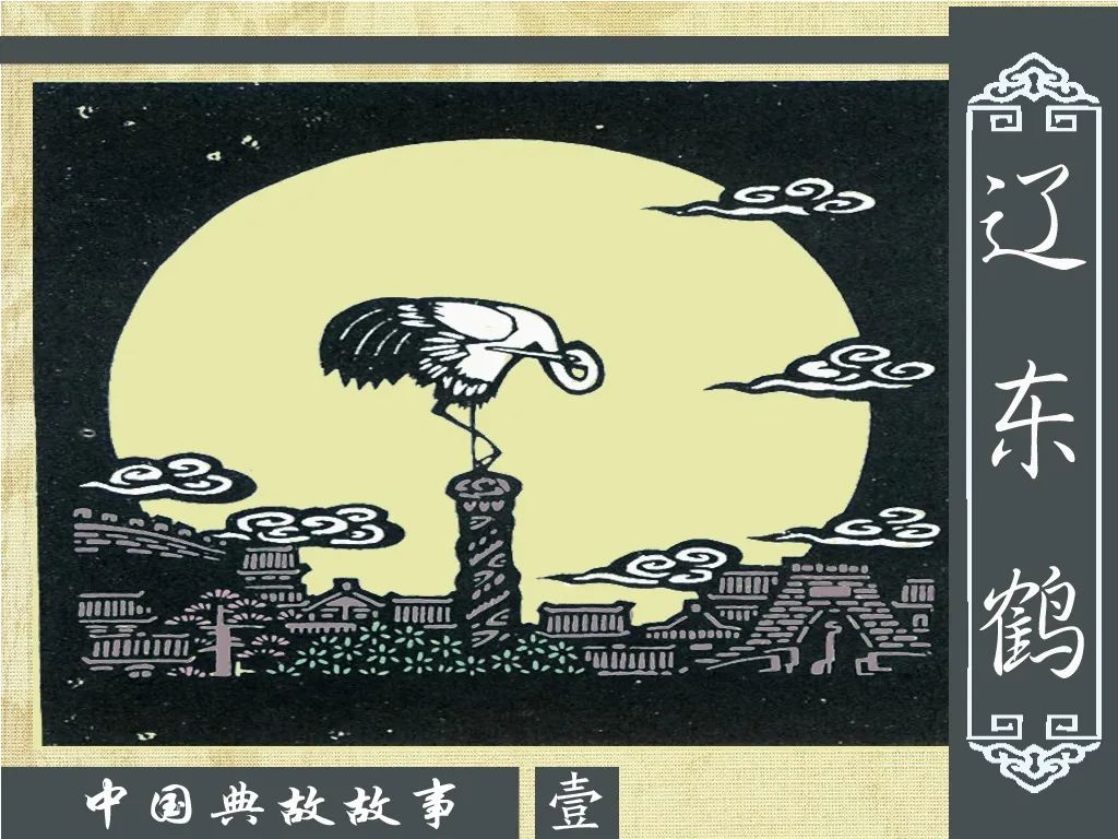 连环画《辽东鹤》讲述了西晋时期的一个传说。有一个名叫丁令威的人,家住辽东。有一天,他去灵虚山学道,得到成仙后思念故乡,就化作一只白鹤飞向辽东。到了家乡后,他的化身停在城门的华表柱上。这时,一个少年看到了,就要弯弓搭箭。白鹤一飞冲天,感慨着物是人非,高飞而去。