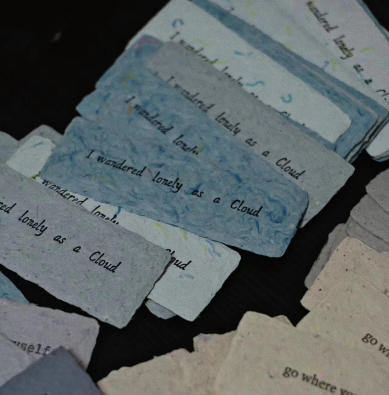 印有诗句的卡片采用环保材料制作,每一张卡片都精心嵌入一粒可发芽的种子,放入土壤里静待发芽生花。