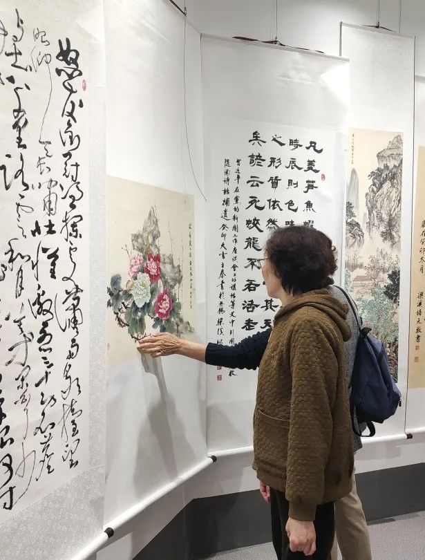 本次书画展共展出近60幅书画作品,出自无锡市老年书画协会南长分会、清韵书画院的老同志之手,他们激情昂扬,笔作耕耘,用笔墨讴歌。