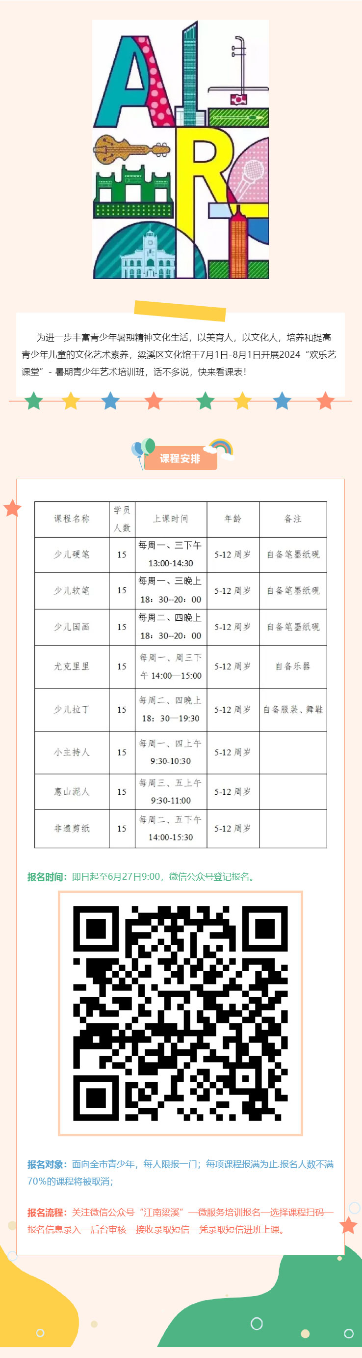 报名丨梁溪区文化馆2024“欢乐艺课堂”-暑期青少年艺术培训班又要和大家见面啦!