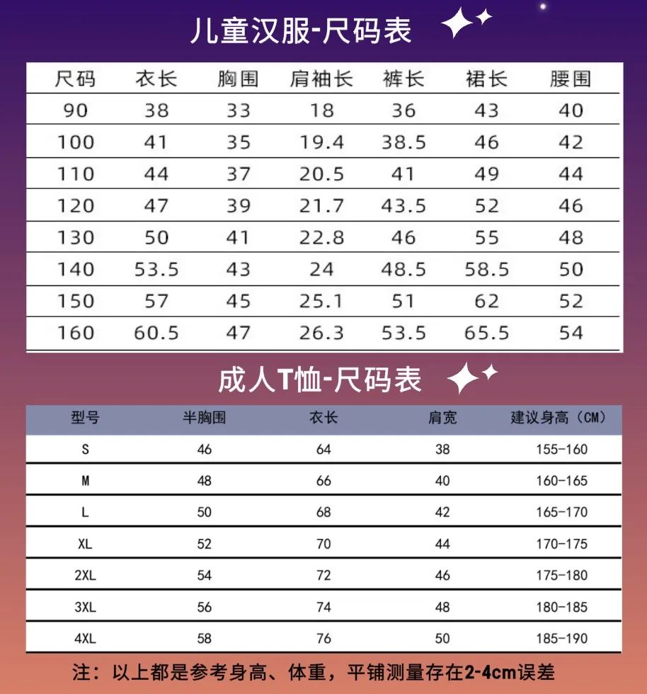 *报名时请先根据个人身高和体重对照尺码表,进行选填服装尺码,后期不可更换哦!