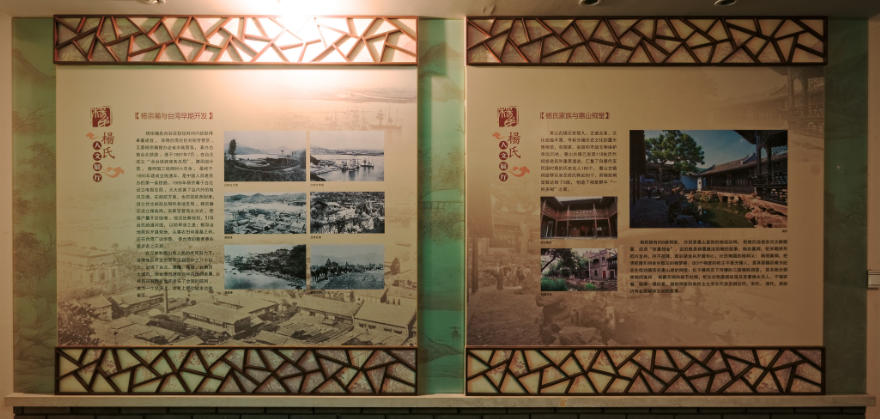 踏入祠堂内部,你可以看到一座匠心独运的“口”字形西洋建筑杰作,其设计巧妙地将古典韵味与现代风尚融为一体,令人叹为观止。墙体采用清水砖墙,楼廊柱、檐框、窗台及外装饰采用西洋风格线脚,青砖砌筑西洋爱奥尼柱式和中式木柱结合一起。门框用砖雕暗八仙花饰,院落内的窗均为西洋风格。此外,祠堂内部还设有展览,主要是介绍杨氏一族的情况。