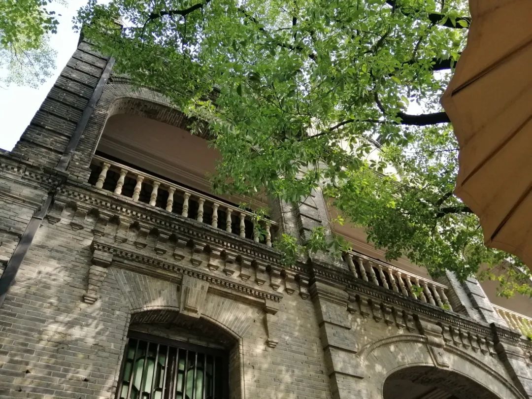 抵达杨藕芳祠,一座西式二层小洋楼映入眼帘,酷似石库门建筑风格,墙体通体灰白、轮廓清晰,用清水砖砌成。楼廊柱都是西洋风格,天井、门楼、柱拱等构件都展现出独特的风采,每一处门窗都为弧形斗拱,尽显端庄典雅。