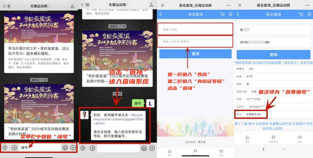 查询方式:微信公众号“无锡运动网”,回复关键词“编号”,进入查询链接,输入姓名、证件号查询。