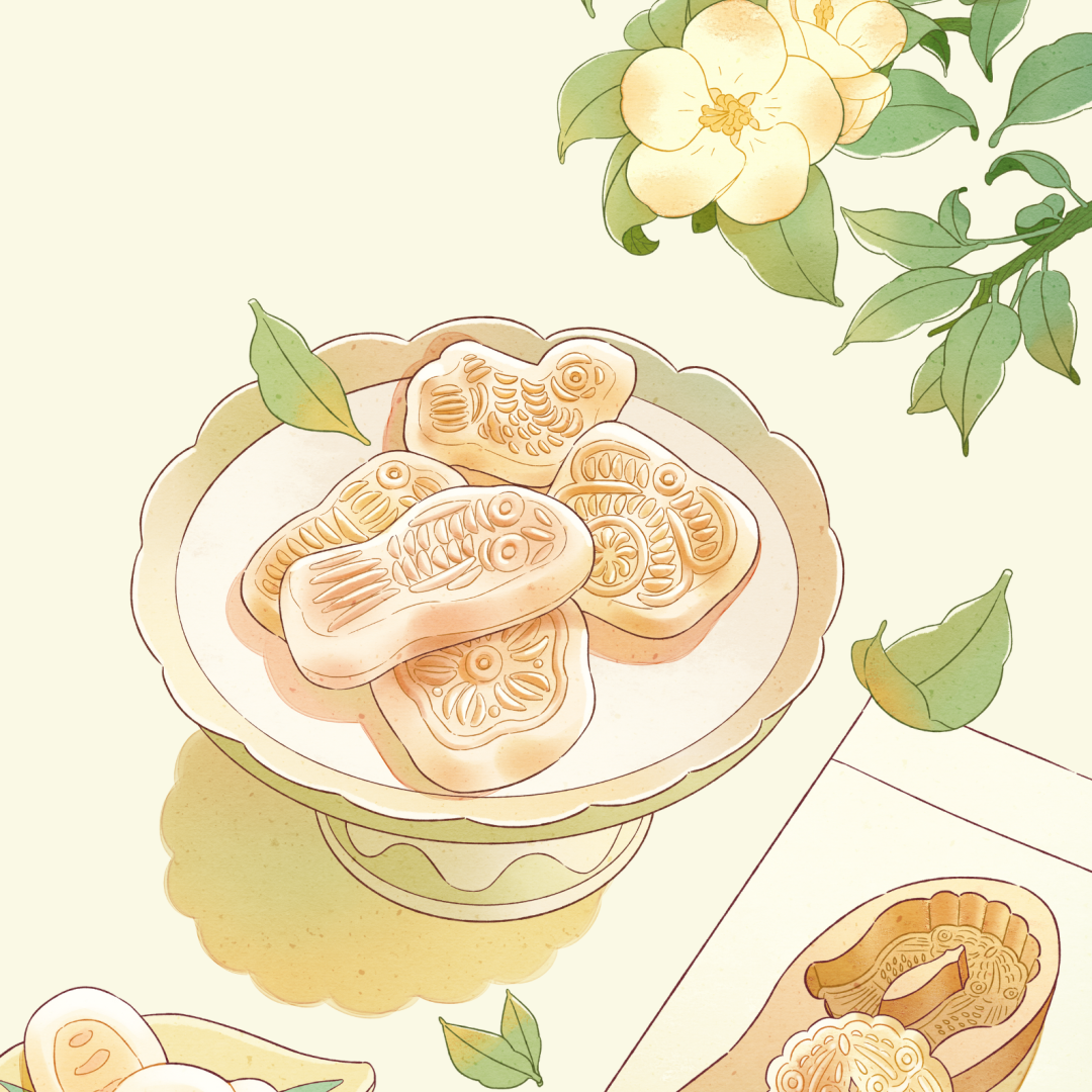 七夕乞巧的应节食品,以巧果最为出名。巧果又名“乞巧果子”,款式极多。主要的材料是油、面、糖、蜜。《东京梦华录》中称之为“笑厌儿”、“果食花样”,图样则有捺香、方胜等。