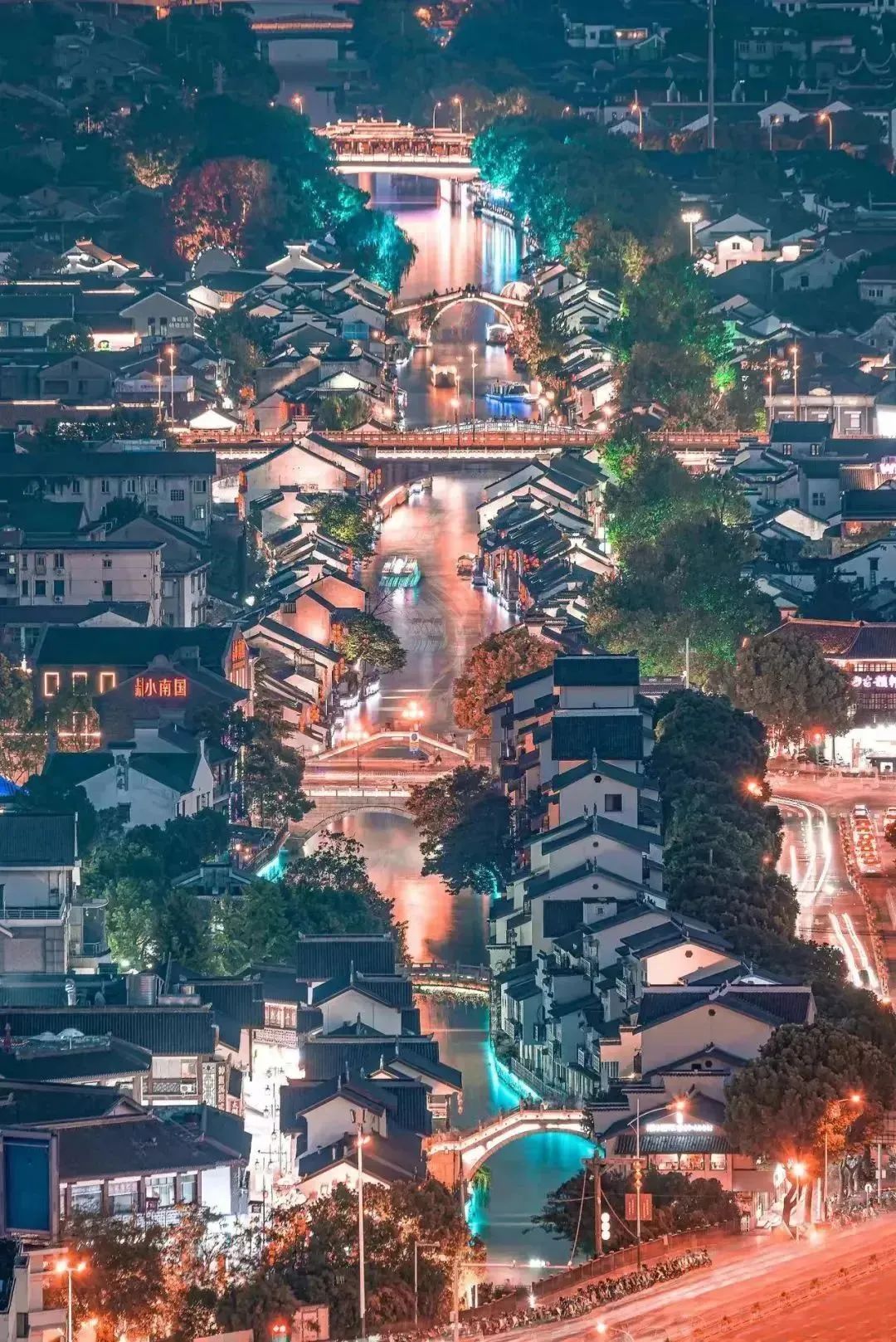 一湾碧水穿城过,两岸缤纷入画来。