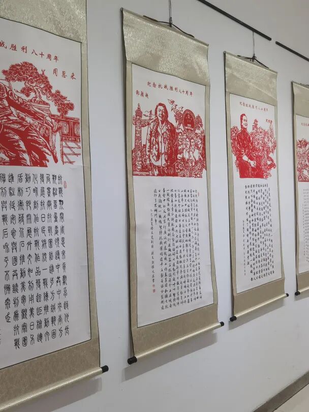 此次展览中,汇集了江阴市民间文艺家协会纸艺会员们的四十余幅剪纸精品佳作,有在抗战中英勇献身的八女投江、杨靖宇、赵一曼等烈士,也有为抗战胜利作出杰出贡献的党和国家领导人 。江阴民间文艺家协会纸艺会员们以纸为墨、以剪为笔,将那段波澜壮阔的历史凝固在一幅幅剪纸作品中,让我们得以穿越时空,感受先烈们的英勇无畏与家国情怀。