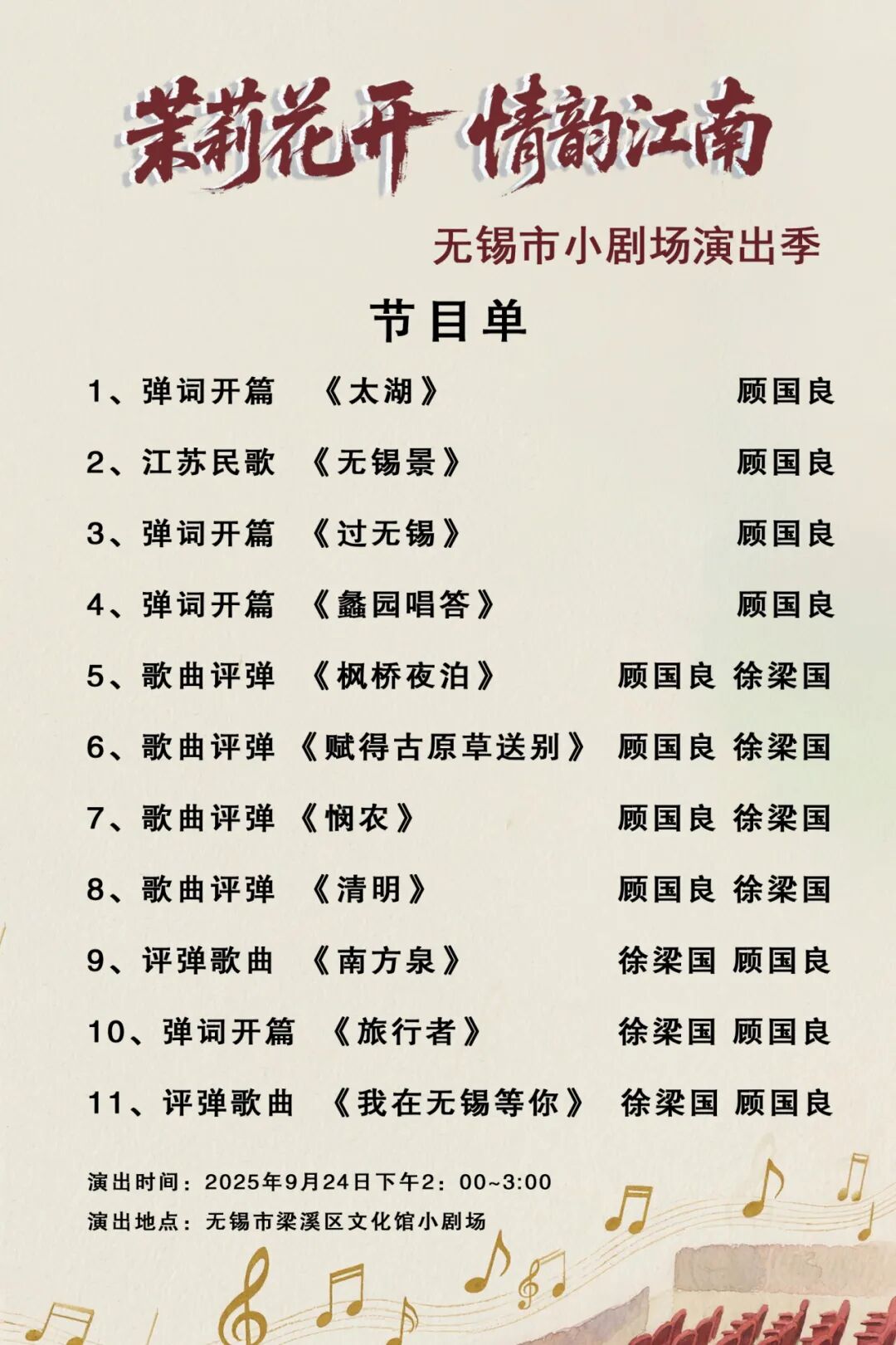当文化的芬芳浸润乡土,艺术的暖流涌入街巷,梁溪人期盼的“家门口的文化盛宴”再度如约而至!2025年“茉莉花开 情韵江南”文化下基层系列活动正式开演,让我们共赴一场融汇传统与现代、典雅与温情的评弹之旅。