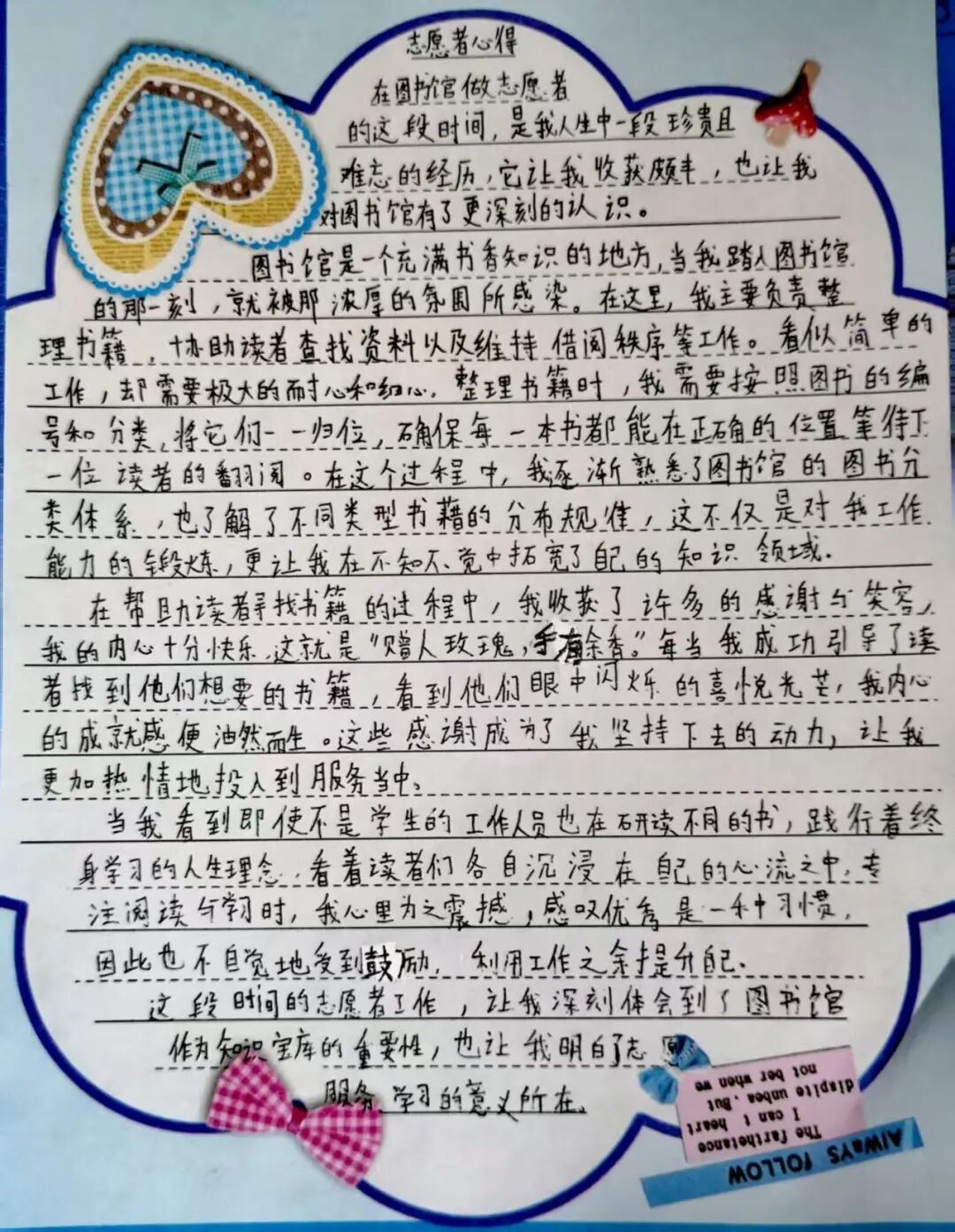 这次志愿者活动让我懂得付出与奉献的快乐,也让我更加热爱阅读。未来我还会积极参与志愿活动,传递温暖与爱。
