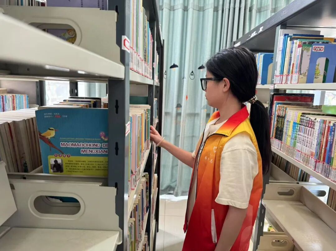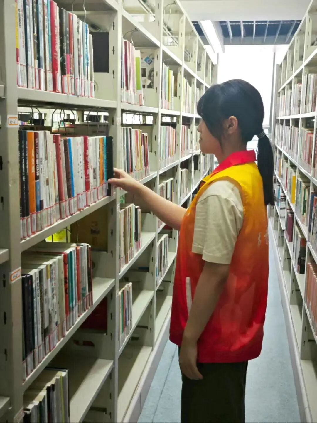 闫梦璇同学在暑期图书馆志愿服务中简直太牛啦!就像一个活力满满的小太阳,给图书馆带来了超多的温暖和能量。不仅细心地把一本本杂乱的书籍整理得整整齐齐,还会耐心地带着读者在书架间穿梭,帮他们找寻心仪的书,不管工作多繁琐,都从不喊累,一直热情高涨、细致认真,用实实在在的行动,完美展现了奉献精神,为图书馆的有序运转添砖加瓦!