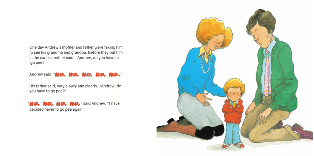 爸爸又慢慢地、清清楚楚地问了一遍:“Andrew你要不要上厕所?”