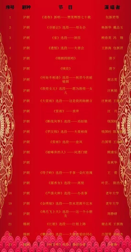 为全面展示、传播中华优秀戏曲文化,7月8日下午一点,由上马墩街道文化站举办的“盛世华诞 荣耀中华”热烈庆祝新中国成立70周年戏曲专场将在梁溪区文化馆七楼剧场举行,届时将有锡剧、沪剧、越剧名家倾情献演。