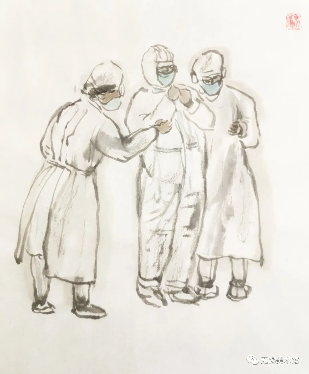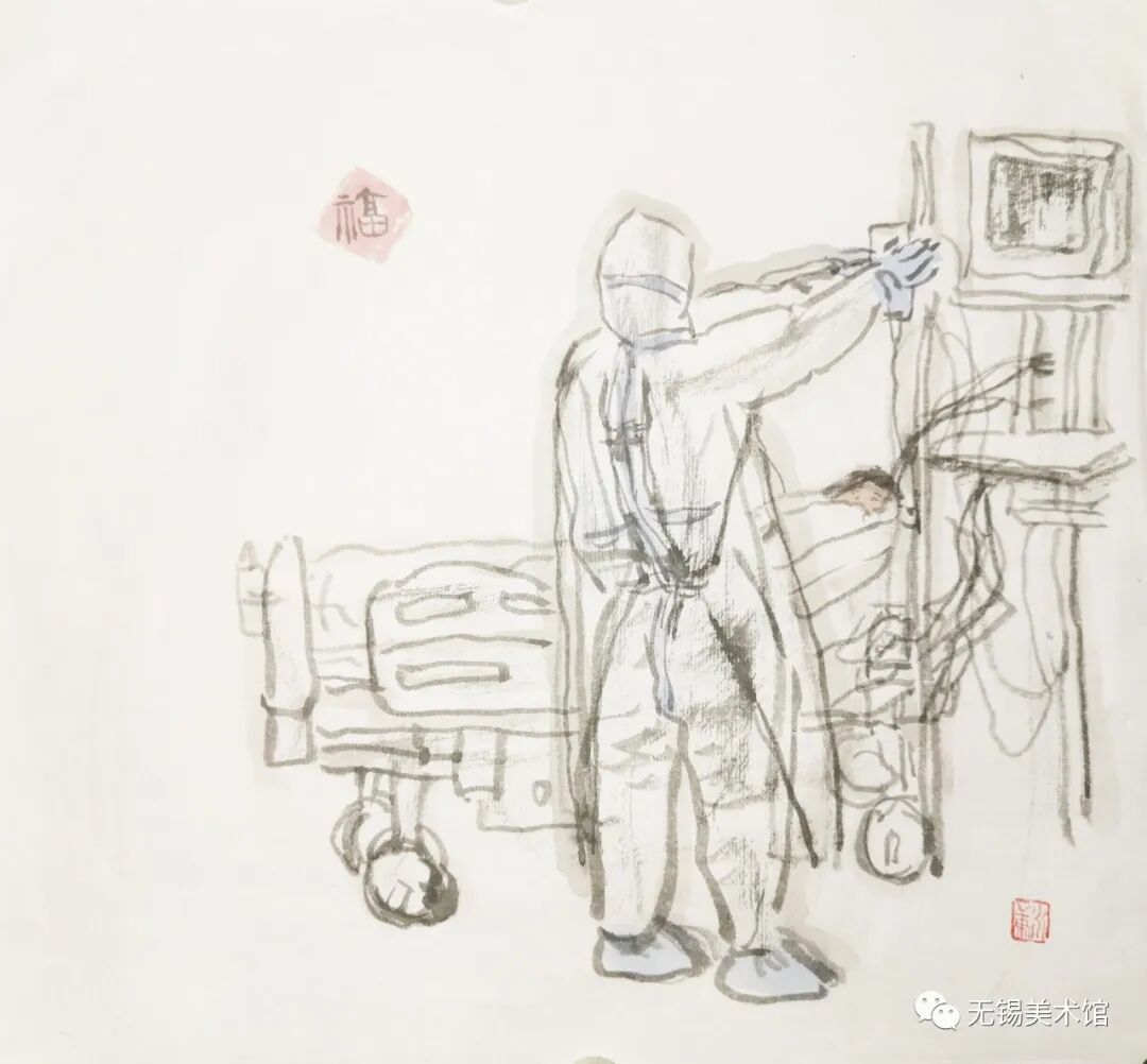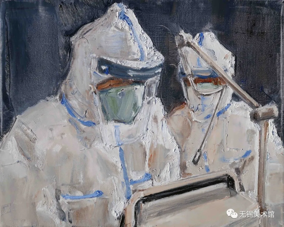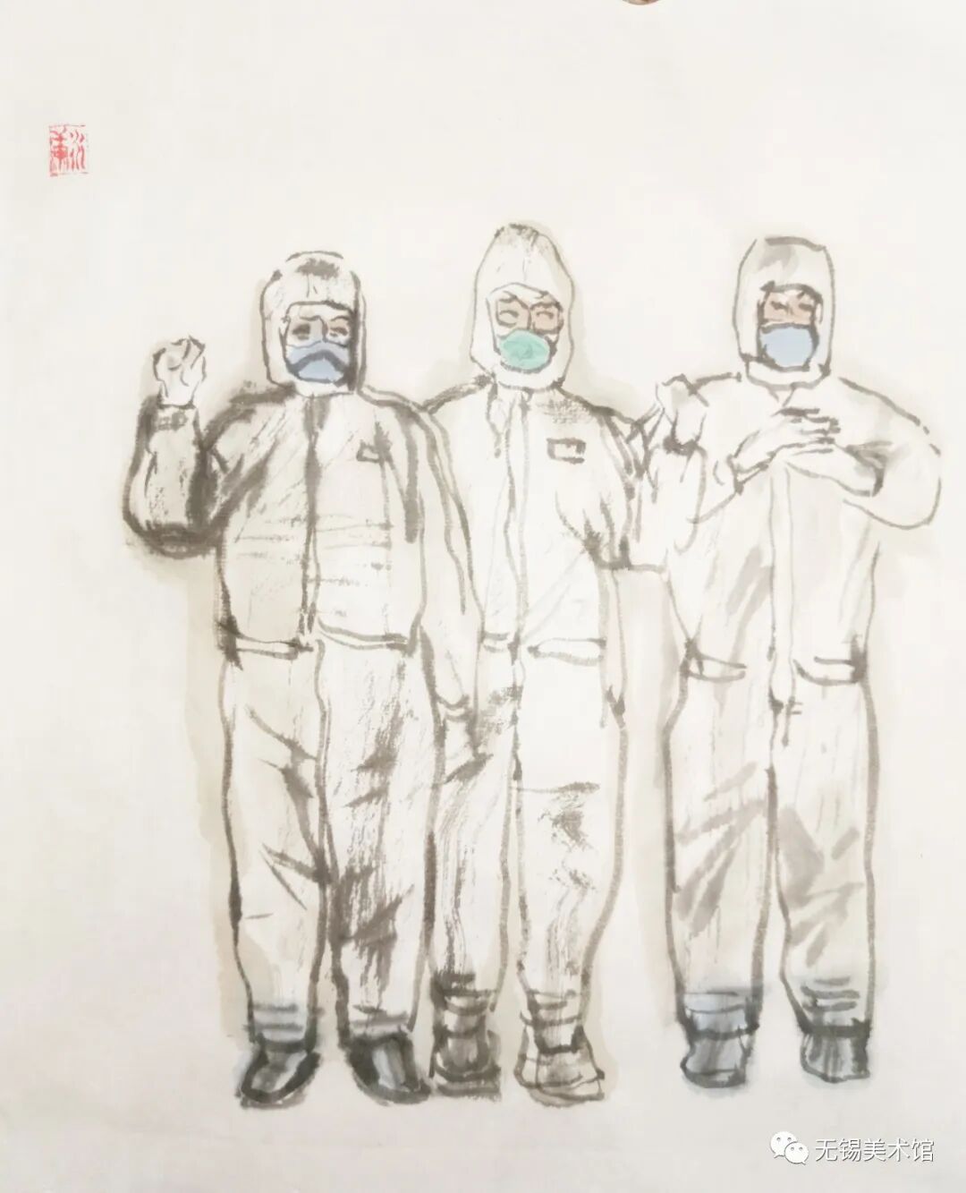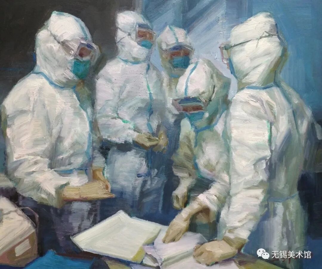 2020年,一场新型冠状病毒肺炎疫情打乱了人们的生活。“生命重于泰山,疫情就是命令,防控就是责任。”习近平总书记对做好新型冠状病毒感染肺炎疫情防控工作、打赢疫情防控阻击战作出重要指示。面对灾难,全国人民齐心协力共同打响防控疫情的特殊战役!全国广大的医务工作者纷纷挺身而出、舍生忘死“逆行”深入险境,各行各业的人们坚守岗位、作出自己的贡献,在这场没有硝烟的战争中成为新时代的英雄!我市广大美术工作者也都迅速行动起来,纷纷拿起画笔,为时代画像、为时代立传、为时代明德。自1月31日发出线上征稿通知之后,无锡美术馆的微信公众平台jswxmsg,先后推送了10期 “E路同行 共克时艰”主题征稿作品179件。这些作品,定格了一个个感人的瞬间,还原了一个个英雄的事迹,描绘出我们这个时代的精神图谱,通过艺术的再创造体现美术家们的社会责任与担当。为了让无锡市民百姓能够在现场近距离观摩这些凝神聚力、抚慰心灵的抗疫主题作品,我们积极组织线下展览的征稿活动,恢复开馆以后,陆续收到了50余件品。和您分享这些记录真生活、传递正能量的作品,与时代同频共振,用文化培根铸魂!