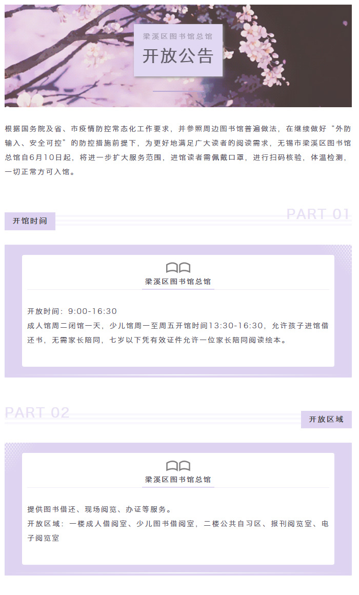梁溪区图书馆总馆关于进一步扩大有序开放的通知