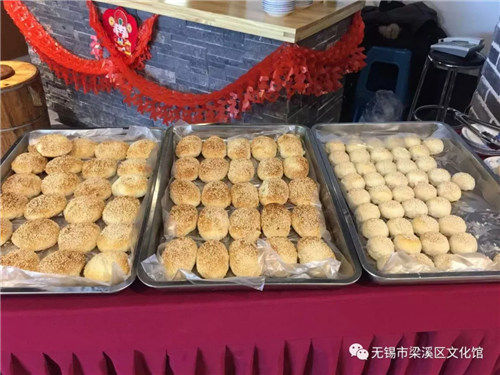 今天在红豆万花城无锡非物质文化遗产展厅——文化大课堂这场小小的美食展示,摆在人们眼前的都是无锡那些历史悠久的非遗美食:马蹄酥、惠山油酥饼、玉兰饼、豆腐花、小笼包、穆桂英糕点、新万鑫银丝面、慧山泉腊月酒、桂花酒等等,还有中国元老注册烹饪大师、崇安寺皇亭小吃制作技艺非遗代表性传承人、江苏省首届烹饪大奖赛点心冠军胡法津先生现场现场制作香喷喷的鸡子大饼,现场品尝。每出一个就被一抢而光,的确又香又脆,做法不同于街面上普通的鸡子大饼,更加讲究更加精致。