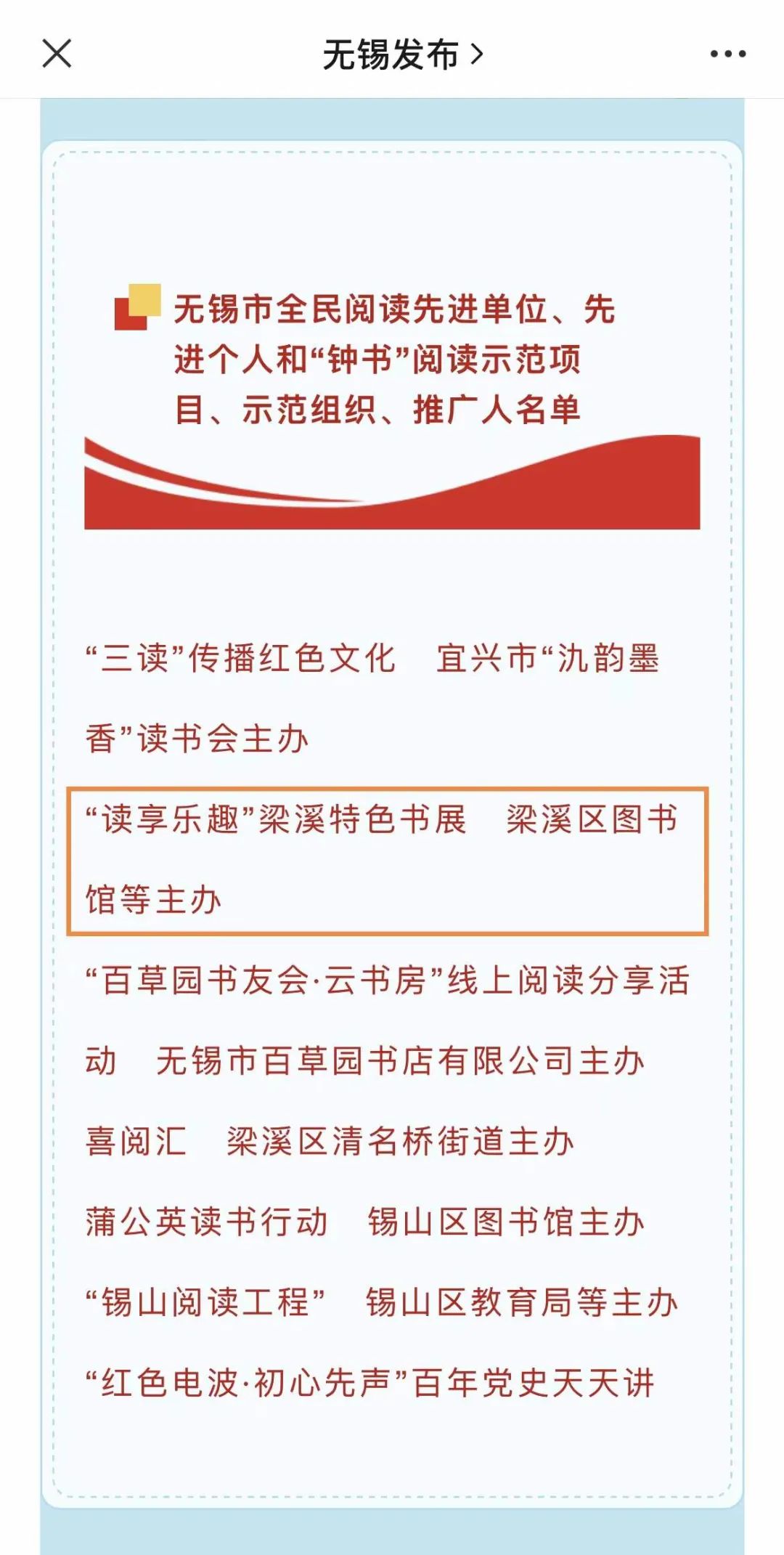 “读享乐趣”梁溪特色书展获评无锡市“钟书”阅读示范项目