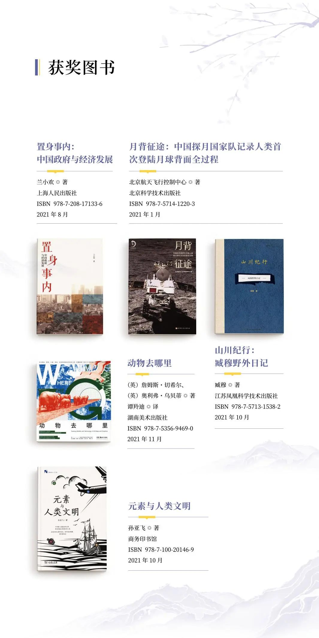 文津图书奖设立于 2004年,是国家图书馆主办并联合全国图书馆界共同参与的公益性图书奖项。文津图书奖采用《簸扬图》为标识,有“读书如稼穑,勤耕致丰饶”之意。该奖项命名为“文津”,不仅缘起于国家图书馆四大专藏之一的“文津阁四库全书”,也寓意“文化津染”,彰显了图书馆作为传承文化的桥梁,为促进作者、出版者和读者之间的良性互动发挥积极作用的使命。