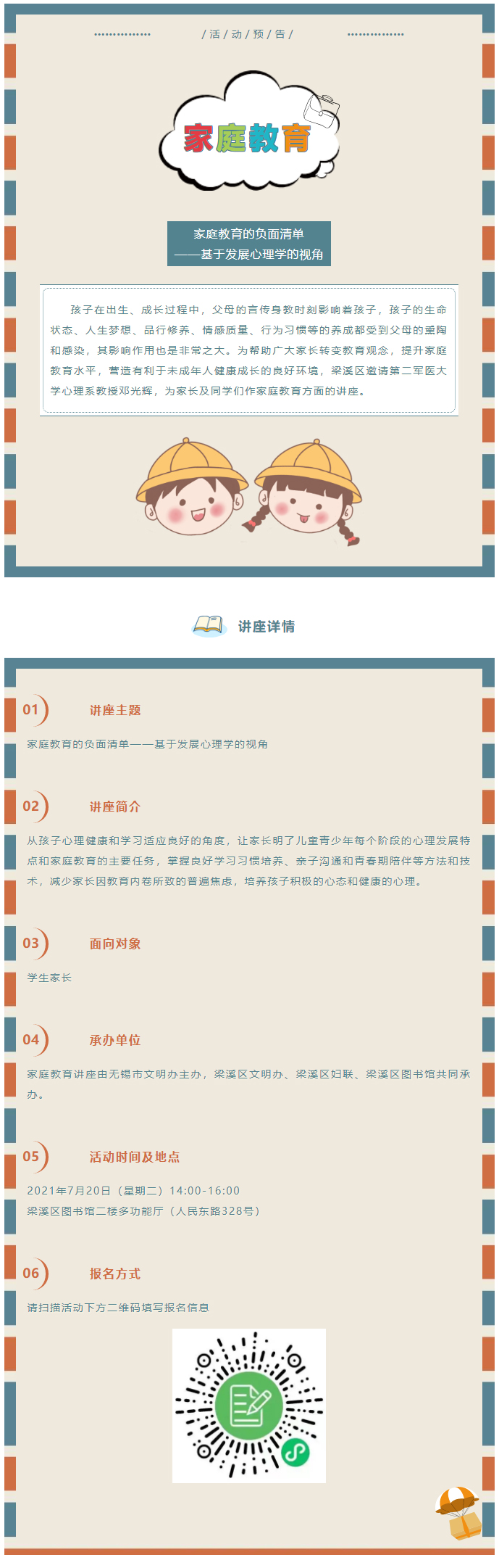 公益讲座 | 家庭教育的负面清单,邀您来参加~~