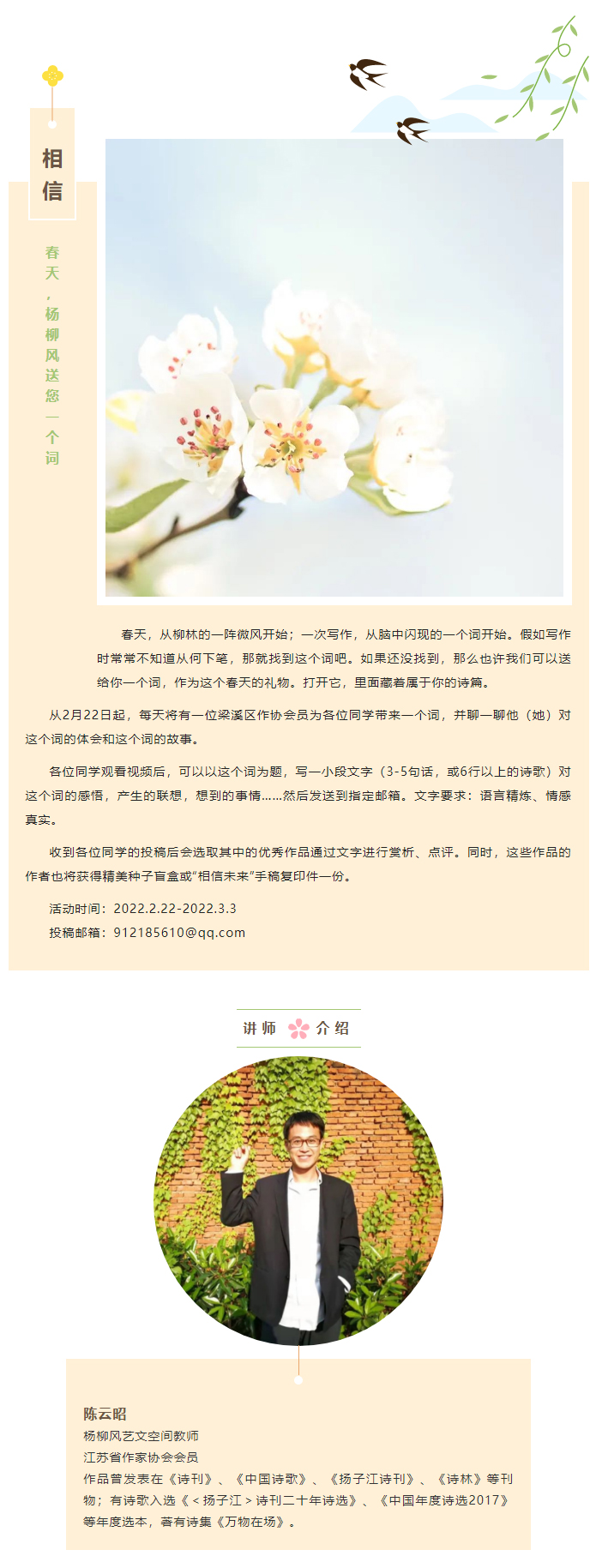 “书”适抗疫,宅家不emo!“春天,杨柳风送您一个词”系列讲座之《相信》