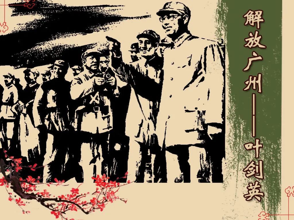 1949年9月底,在叶剑英等将领的统率下,解放两广的战役正式开始。1949年10月14日,中国南疆的门户、具有光荣革命历史的名城广州,迎来了解放。下午6时30分,我军先头部队从广州北郊攻入广州市区。由广州向西南逃窜的敌人主力在阳江被我军全歼。经过34天的激战,广东大部分地区获得解放。