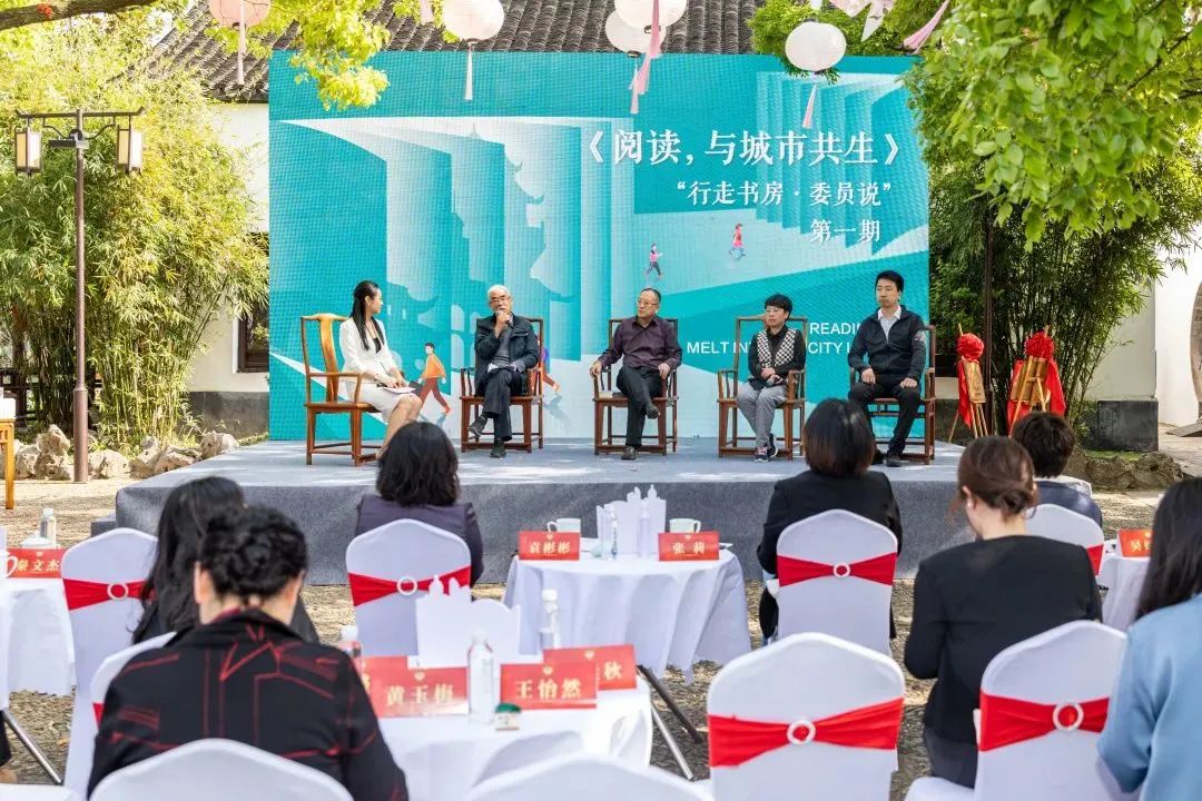 启动仪式结束后,围绕“阅读,与城市共生”主题,举办了“行走书房.委员说”第一期。邀请江南大学人文学院教授、无锡市文史专家刘桂秋,梁溪区政协常委、无锡市通商会会长丁康权,梁溪区政协委员、国家级非遗项目(无锡留青竹刻)省级代表性传承人乔瑜,梁溪区政协常委、无锡诺信安全科技有限公司总经理王怡然讲述阅读与城市发展、阅读与履职的故事。