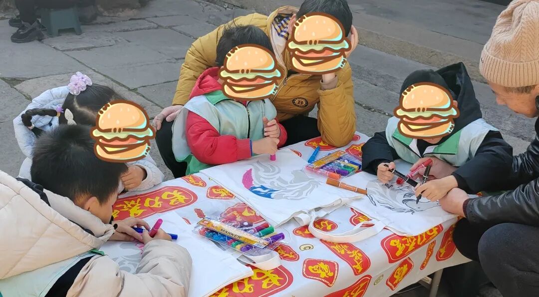 马蹄声声近,孩子们在老师的引导下,在空白帆布袋上以奔腾骏马入画,寓意新年一马当先、前程万里。孩子们笔下的马儿也充满了他们自己的想象,颜料与童趣一起迸发着和谐的新生。