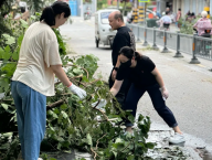 区文体旅游局全体干部下沉一线参加台风过后清理工作