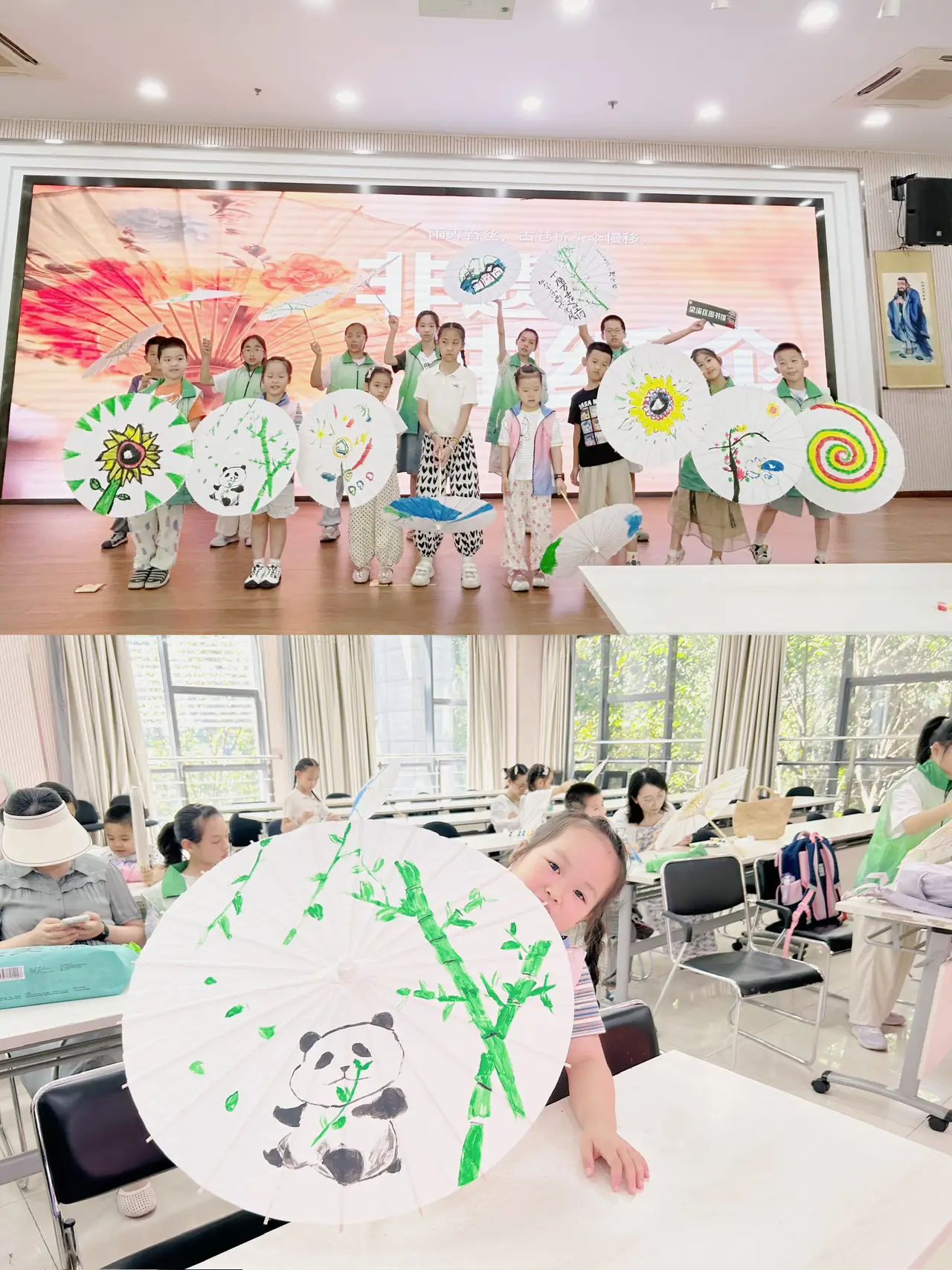 🎨感受非遗之美,绘就夏日色彩。书本里的非遗:油纸伞彩绘活动让孩子走进古老的非遗文化。☂️油纸伞这个传承了千年历史的传统手工艺品在孩子们手中焕发了全新的色彩。🖌️绘制过程中,孩子们不仅了解了油纸伞的制作工艺,也对它所代表的传统文化有了更深入的认知。