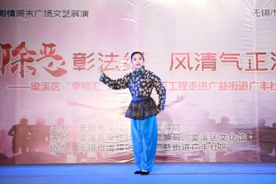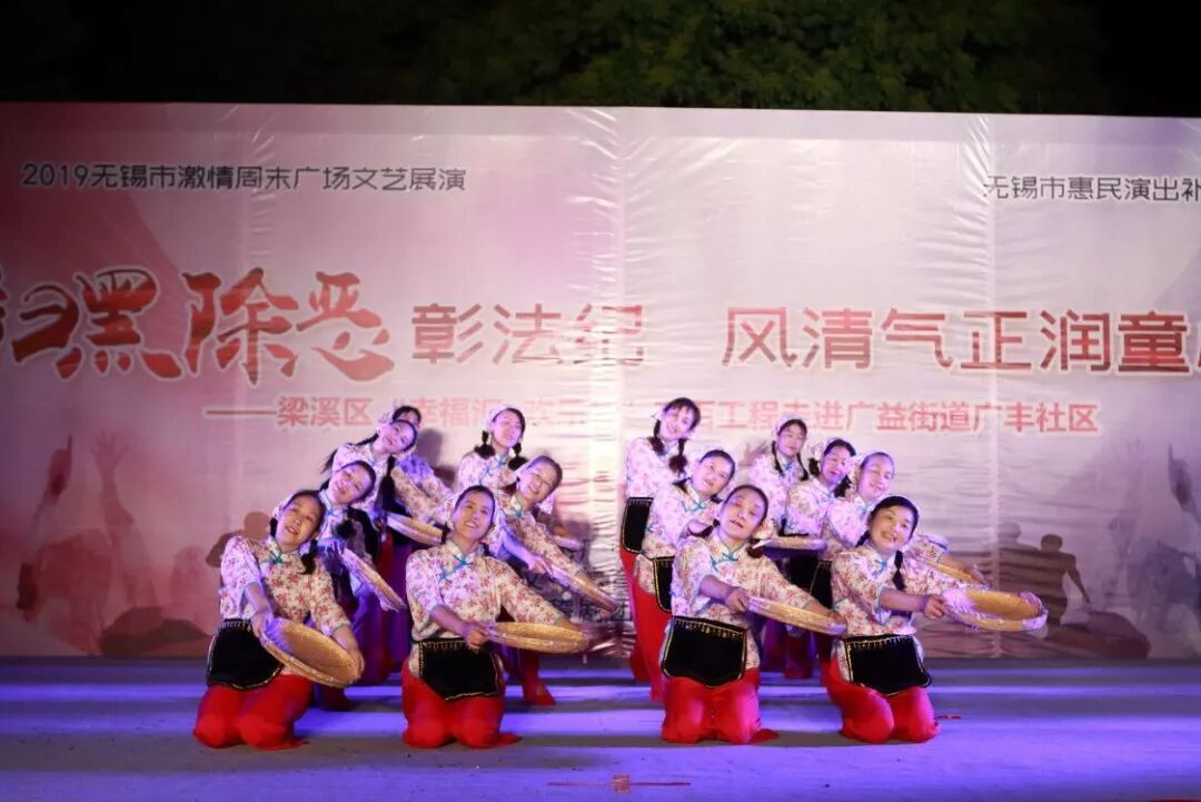 5月29日晚,由无锡市文化广电和旅游局主办、梁溪区文化体育和旅游局、梁溪区文化馆承办的2019无锡市激情周末广场文艺展演暨“扫黑除恶彰法纪 风清气正润童心”——梁溪区“幸福汇 欢乐行”三百工程进社区活动在广益街道广丰社区拉开帷幕。
