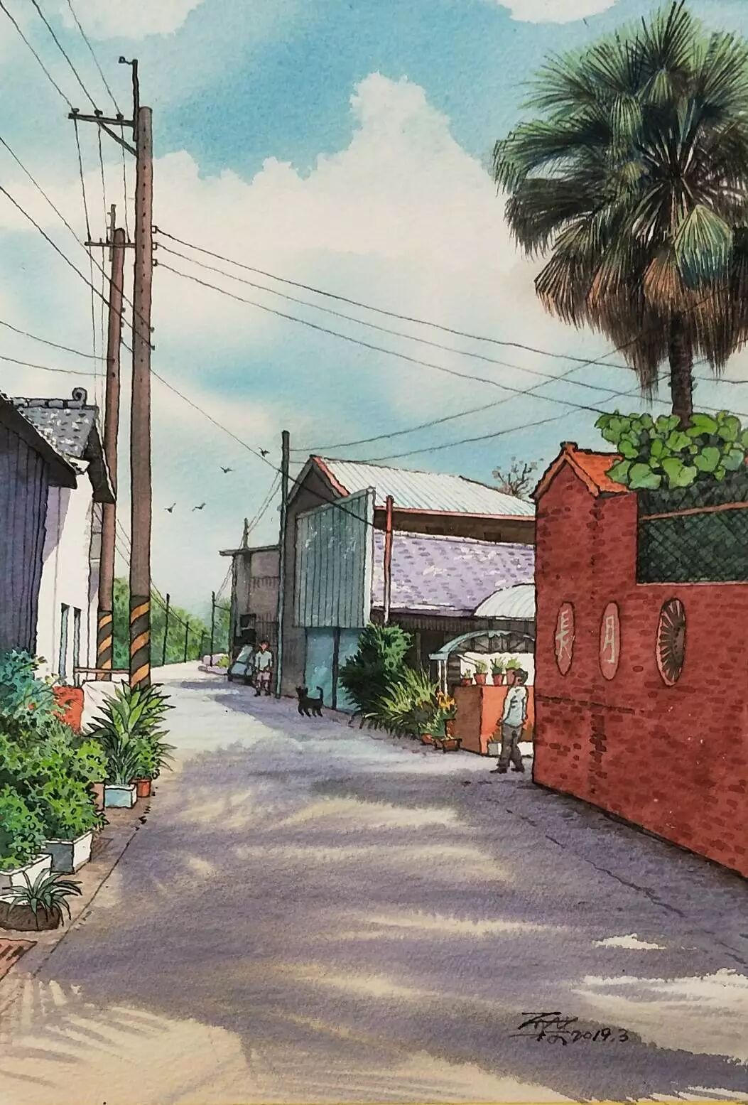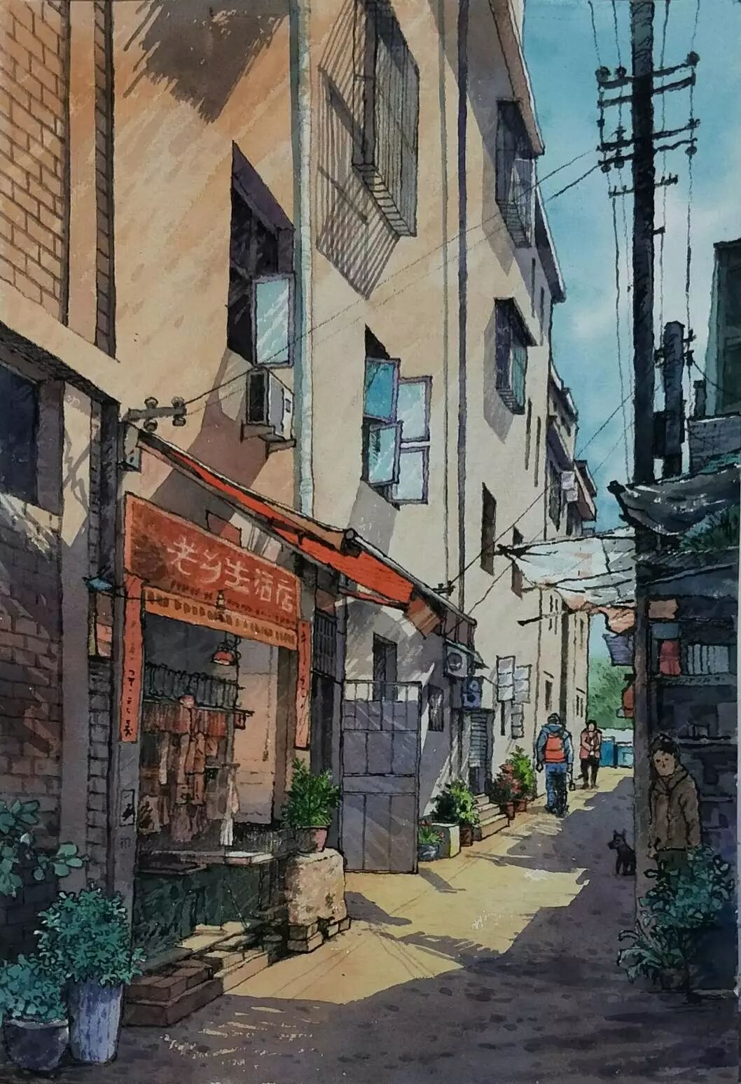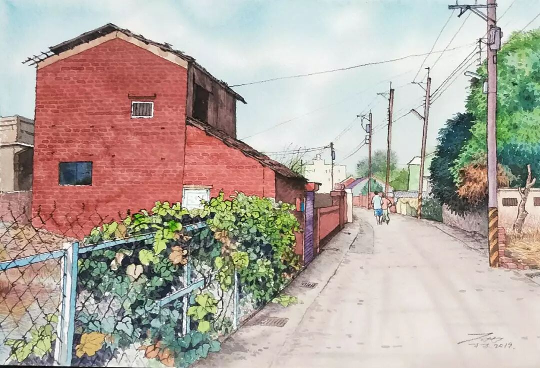 张晋霖 〈福州.阳光小巷〉 枯枝水彩