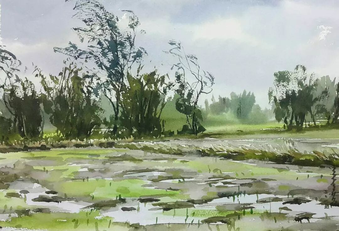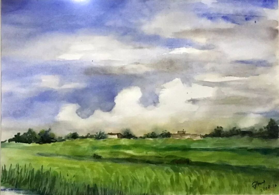 简来喜 〈季风中的田野〉 水彩/纸本