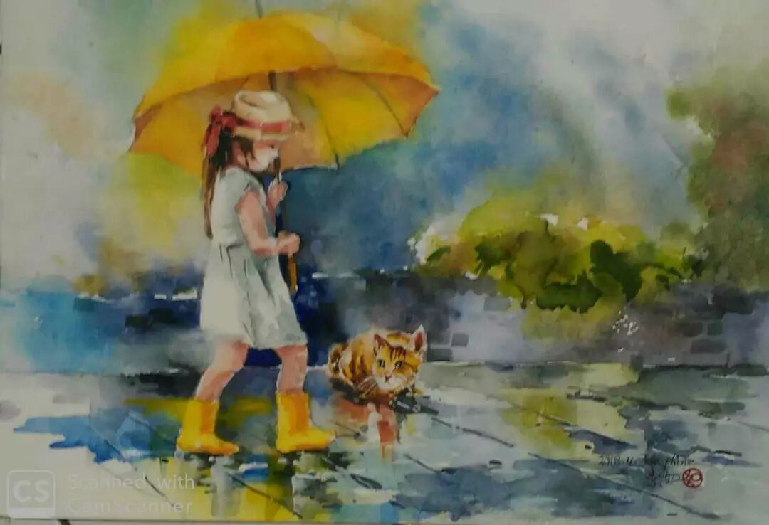 陈奕如 〈雨中送暖〉 水彩/纸本