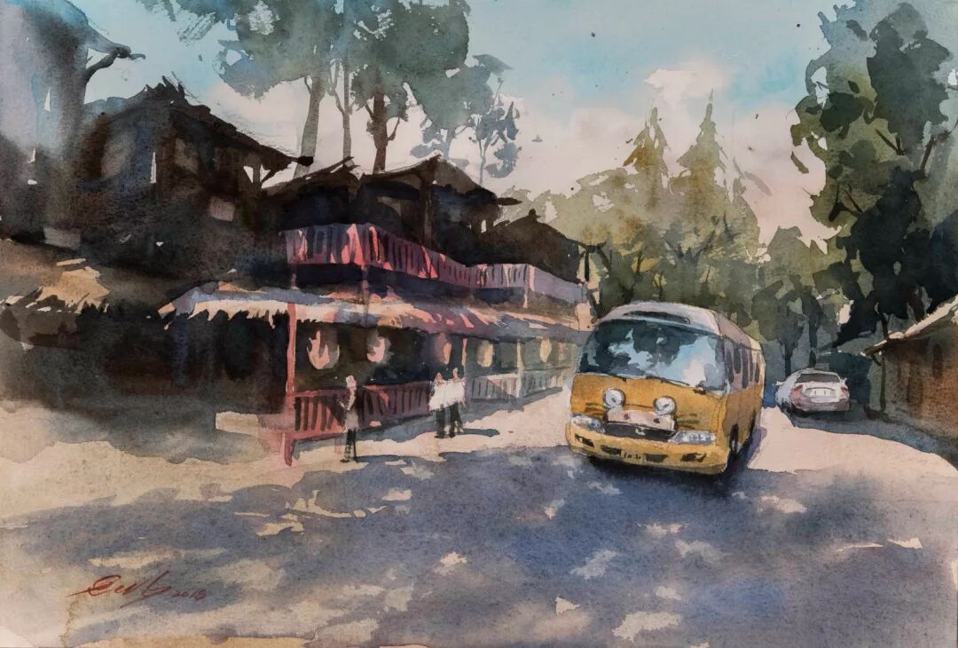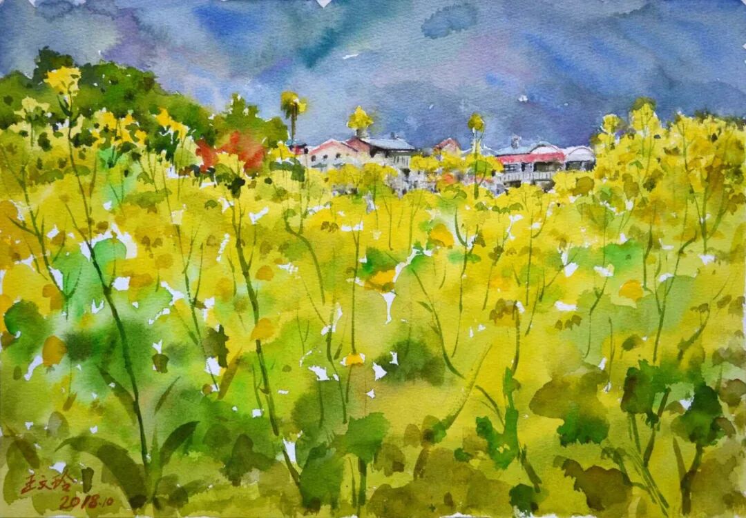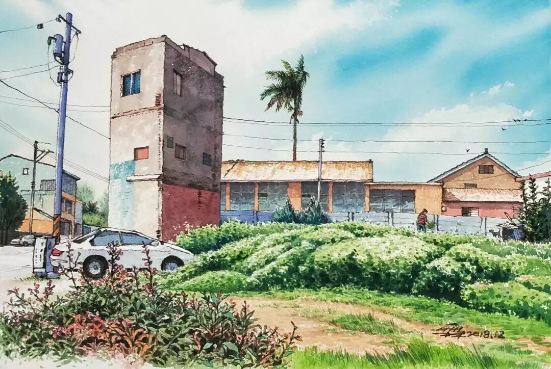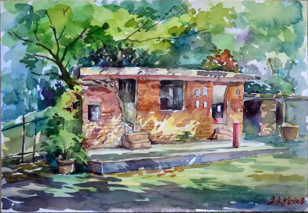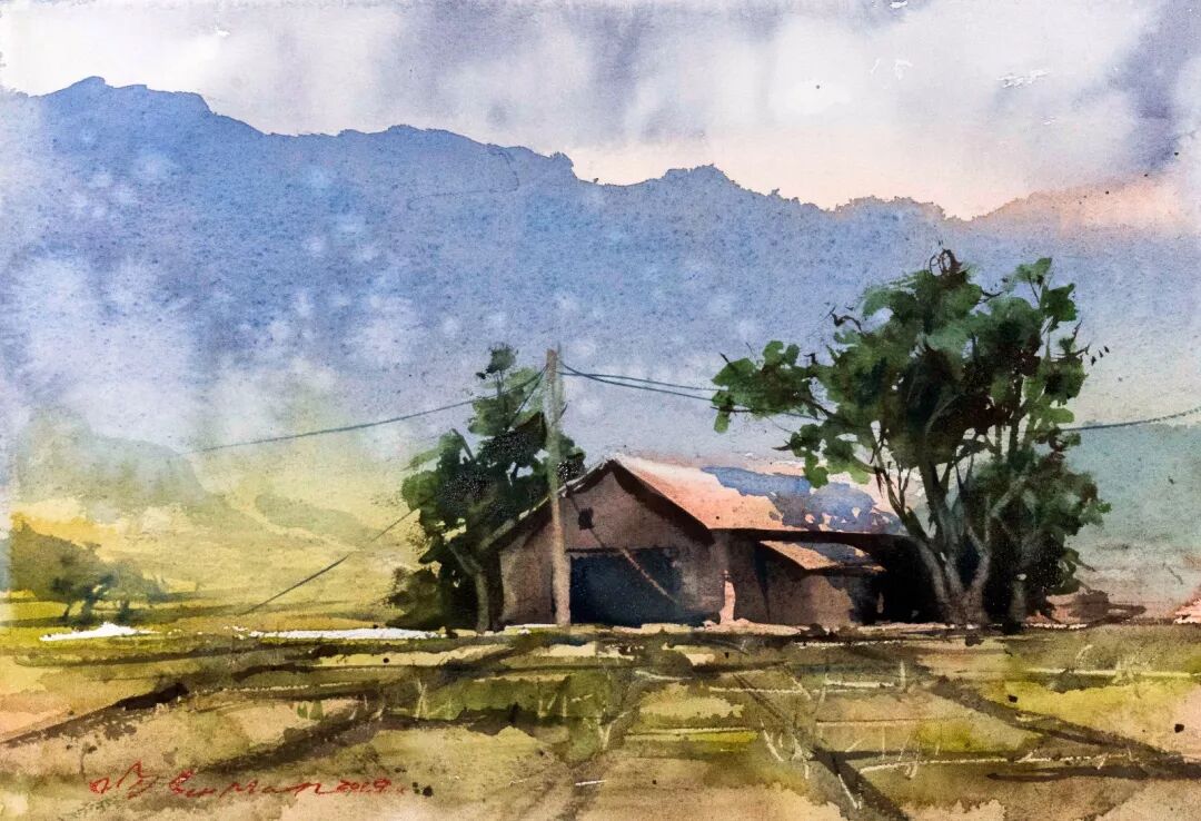 刘芳 〈新屋风光〉 水彩/纸本
