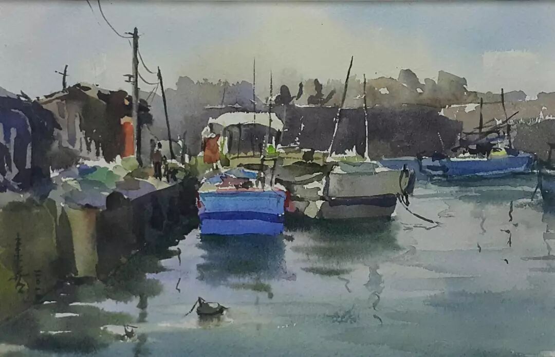 简来喜 〈泊〉 水彩/纸本