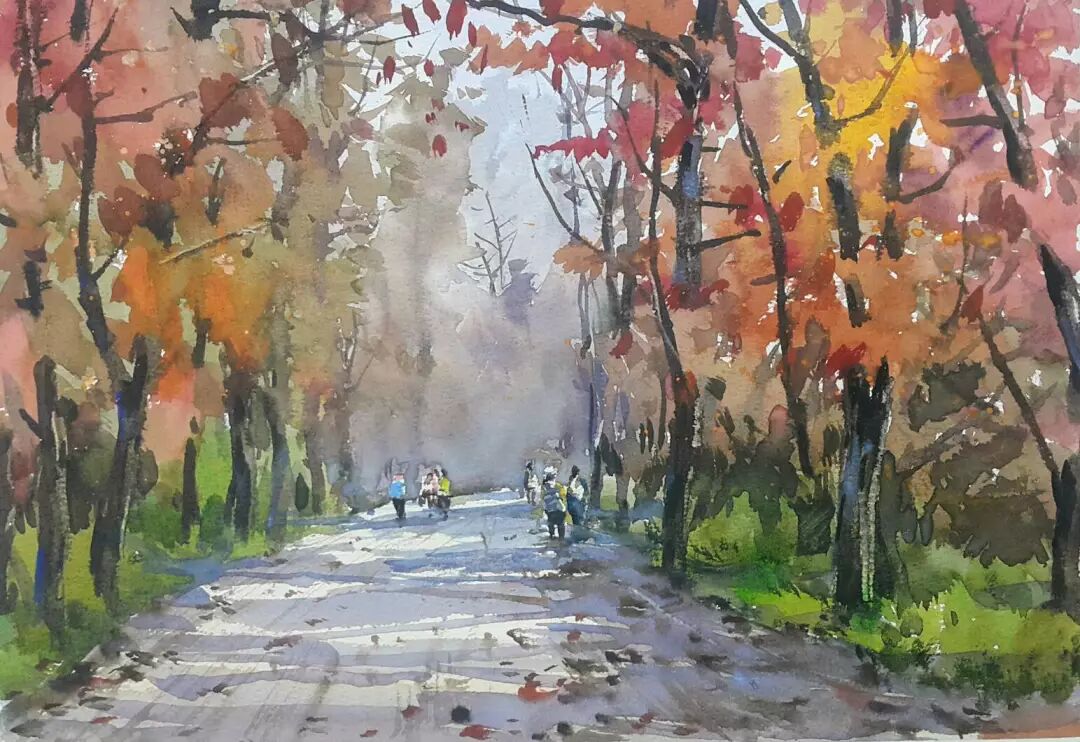 张晋霖 〈乡村小路〉 枯枝水彩