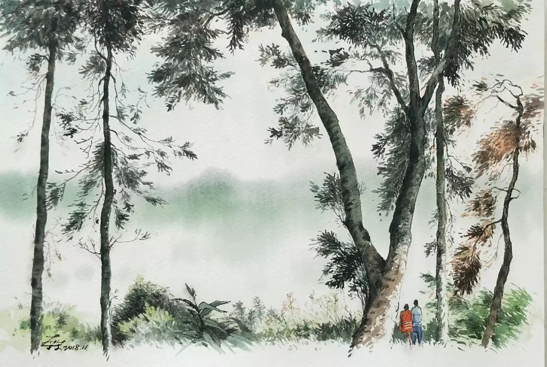 张晋霖 〈乡间一隅〉 枯枝水彩