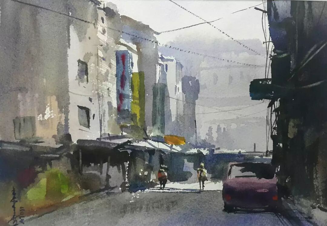 简来喜 〈夜市的早晨〉 水彩/纸本